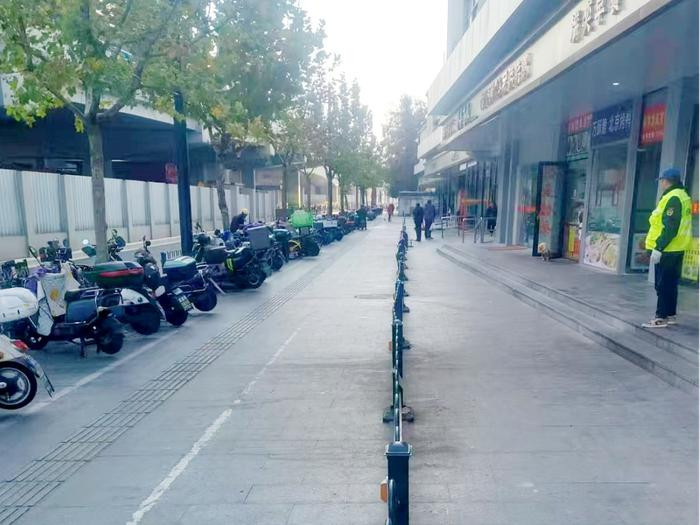 另一方面,街道管理办联合综合行政执法队、市容绿化等部门,重点针对占用人行道、消防通道、盲道的非机动车以及外卖电瓶车进行了专项清理,并在现场增设明显的标识牌及菜市场停车区隔离带,引导车主规范停车。